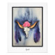 Original watercolor painting by Sandra Taylor Gale entitled "Spirit" featuring a deer skull, decorated with loose watercolor feathers and three pink roses. Dark and moody, and painted in a watery Indigo, this piece has a touch of a Southwestern feel. Also available on other items in my EverIris Store.