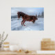 Spirited Sorrel Horse Rearing Up in Winter Snow Poster