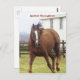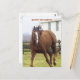 A beautiful Thoroughbred stallion gallops towards the camera, displayed as a postcard. --- Photo is copyrighted by the photographer, Christina Spiegeland.