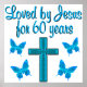 This 60 year old praises God every day of her beautiful and spirit filled life. This lovely woman has been loved by Jesus for 60 years. Enjoy this blue cross and butterfly 60 year design on Tees, Mugs, Tote Bags and Gifts. Your awe inspiring 60 year old will adore this unique and one of a kind 60th customised birthday gift that she will treasure every year. Celebrate turning 60 with a beautiful 60th birthday prayer. Give the gift of an original 60th birthday design to rejoice in turning 60.
