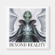 Bring a touch of cosmic curiosity to your space with this unique magnet. Featuring an alien in deep contemplation, with a glowing crystal levitating above its hands. The words “Beyond Reality” are written, adding to the mystery. Perfect for fridges, lockers, or any metallic surface, this magnet invites viewers to step beyond the everyday and into the unknown.