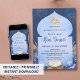A serene and deeply spiritual invitation featuring a classic Islamic arch, a watercolor Quran on a wooden stand (rehal), and elegant blue floral accents with gold glitter. This peaceful design is ideal for Iftar gatherings, Quran Khani, or religious lectures during the holy month.