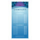 Blue rack card with a Spiritual Purple Flower mandala at the top. Plenty of space for your pricelist on both front and back. This price list menu matches the Spiritual Purple Flower mandala business cards and business collection.
