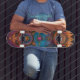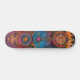 This skateboard design has a colourful illustration of a mystic entity and cosmic symbols.