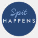 "Spit Happens" Baby Shower Sticker in Navy Blue and White