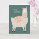Spit happens. This humourous sympathy card is great for less serious life events, sometimes stuff happens and this llama is here for it. The front features a llama and reads "Spit happens" The inside finishes the pun and reads "Hope your dillama is better soon"