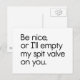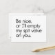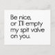 Be nice, or I'll empty my spit valve on you! Let this serve as a warning to your fellow musicians...