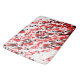 This rug is just as pictured! Vibrant Red and very soft material, nice to step in out of the tub! Matches my set of accessories and shower curtain! A must have to add some whimsy to your bathroom! Very nice, vibrant and clear print! Beautiful!