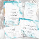 This chic and modern wedding place card features a white background with splashing waves in turquoise blue and faux/fake gold. Personalize it for your needs. You can find matching products at my store.