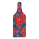 Large scarlet red, medium navy blue, and small royal purple daisy-like flowers are scattered across a rich jungle green background to create a colourful floral pattern that is perfect even for autumn. Customise the monogram on this cutting board with your initial to make it uniquely your own.