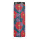 Large scarlet red, medium navy blue, and small royal purple daisy-like flowers are scattered across a rich jungle green background to create a colourful floral pattern that is perfect even for autumn. Customise the monogram on this tumbler with your initial to create a unique container for your beverages.