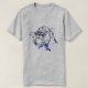 This t-shirt is called 'splatted bulldog'. It shows a black outline of a bulldog with blue and black splats in front and behind it. This design is a funny and original design and is sure to make you stand out in the crowd.