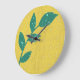 Splatter Green Leaf on Yellow Floral Wall Clock