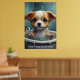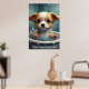 Cute adorable animals sitting in a bathtub, with water droplets and bubbles around it. The artwork image looks at the viewer with wide, innocent eyes, and its little feet rest on the edge of the tub. The overall atmosphere is cute and humourous, making it ideal for a poster set.