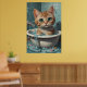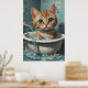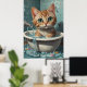 Cute adorable animals sitting in a bathtub, with water droplets and bubbles around it. The artwork image looks at the viewer with wide, innocent eyes, and its little feet rest on the edge of the tub. The overall atmosphere is cute and humourous, making it ideal for a poster set.