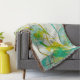 A quality printed throw has its advantages. This is a much finer weave throw than its loopier cousins, and though lighter, it is worth the investment for custom room accessorizing. The back is much prettier than the typical brown, and the fringe on the long sides very vivid, the selvage nicely done. Before photographing, I washed the throw in cold water, delicate, with a thicker woven throw the same size. On tumble dry low, this throw was dry in half the time as the other. This is a very practical quality if you use throws for furniture covers or to wrap up in frequently. The sleekness of the fabric makes it a great layer for accenting or protecting without the feeling of sitting on too much stuff. Perfect for napping or when you feel a light chill coming on. The color printing is beautiful and on this fabric, matched the design and color of my Photoshop image. This is an advantage for blending room fabrics and colors. The fringe on the short sides prints the colors from the design image and therefore varies from the side fringe. I streaked a white fractal line through the plaid pattern to give the illusion of weaving. This printed as crisp as an illusory thread, and put some white in the short side fringe, showing another advantage of print vs loomed- for artistic purposes, line lines, detail, and color integrity can be planned and preserved. My loomed throws have color limitations and more of a needlepoint texture. Print throws reproduce an exact image. The throw felt a little stiff straight out of the package, but this went away in the first delicate wash. Of course I searched the wash water for ink or bleeding and there was none.