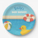 Make a splash at your baby shower with these Splish Splash themed custom paper plates! Perfectly coordinated with your pool party baby bash, these plates feature cheerful summer graphics— a rubber duck, a colourful beach ball, and a sparkling blue pool—plus your choice of personalised name or message printed right on the plate.