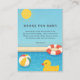Encourage guests to help build baby’s first library with this adorable Books for Baby enclosure card, perfectly designed to match your Splish Splash pool party baby shower theme! Featuring the same cheerful summer graphics—including a rubber duck, beach ball, and sparkling blue water—this card is a sweet and thoughtful addition to your invitations.