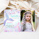 Splish Splash Mermaid Girl 4th Birthday Party Photo Invitation