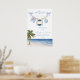Adorable baby shower welcome design featuring a sweet nautical clothesline with baby shorts, a bib, and a life preserver in soft blue watercolor tones. The tropical palm tree and peaceful shoreline create a light oceanfront feel, while the airy pastel palette adds a fresh and elegant touch for a baby boy celebration. This charming poster is perfect for ocean, seaside, nautical, tropical, or beach baby shower themes and uses a broader mix of search-friendly keywords to help reach more shoppers.