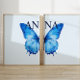 Split Butterfly Custom Name Wall Art Blue Set of 2
