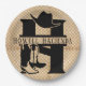 Split Monogram Letter "H" with cowboy boots and hat on rustic chequerboard background. Personalise with family or business name