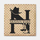 Split Letter N Cowboy silhouette monogram on rustic chequerboard pattern. Personalise with name or business