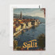 A captivating vintage illustration of Split, a historic city on the Dalmatian coast of Croatia. The design showcases the ancient Roman architecture, stunning coastal views, and lively streets that define this beautiful destination. With a nostalgic and retro aesthetic, the artwork highlights Split's rich heritage and Mediterranean charm, inviting viewers to experience its timeless allure.