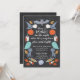 Hauntingly perfect for your next Halloween party. A black background highlights a spooky array of Halloween characters who are ready to announce your big party.