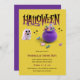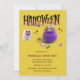 This adorable Halloween invitation is perfect for a children's spooktacular costume party. The bright yellow background sets a cheerful tone, making it ideal for kids' celebrations. The playful "HALLOWEEN" text at the top immediately catches the eye, while a cute, smiling ghost adds a friendly touch of spookiness.