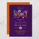 Design features traditional Halloween colours of black, grey, orange, and purple. Full of Halloween symbols, spiders, ghosts, bats, and black crow.