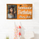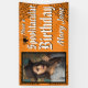 Display this Spooktacular Halloween Photo Birthday Banner in honour of the birthday person. Personalise with her name, age, and photo. This orange and black spooky banner features a cute spider hanging from a spiderweb with creepy holiday fonts.