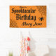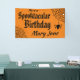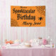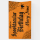Hang this Spooktacular Halloween Spiderweb Birthday Banner to celebrate a super special day. Personalise with her name. This orange and black spooky banner features a cute spider hanging from a spiderweb and creepy Halloween fonts.