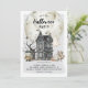 Unleash the spirit of Halloween like never before with our spooktacular haunted house party invitation! Our unique design boasts a rustic light grey background, complete with thrilling depictions of a haunted house, an ominous gravestone, a ghostly figure, and more! This modern party template is versatile and can be easily tailored to meet your needs. Perfect for a Halloween trick or treat party that promises to be both fun and frightful!