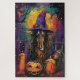 Spooky Afghan Hound Halloween Witch and Pumpkin Jigsaw Puzzle