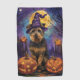 Spooky Airedale Halloween Witch and Pumpkin Golf Towel