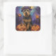 Spooky Airedale Halloween Witch and Pumpkin Square Sticker