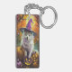 Spooky American Eskimo Halloween Witch and Pumpkin Key Ring