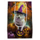 Spooky American Eskimo Halloween Witch and Pumpkin Medium Gift Bag