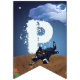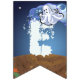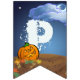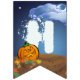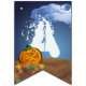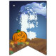 Having a Halloween party for your kids? Our Happy Halloween Bunting is perfectly cute and spooky featuring our original art of a cute jack-o-lantern, black cat, and ghost against a spooky Halloween night with a moon and wispy clouds. The individual flags each hold a fun character and spell out Happy Halloween. Sure to be a big hit this fall for anyone who loves Halloween, fall weather, pumpkins, jack-o-lanterns, and trick or treating.