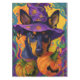 Embrace the Halloween spirit with this enchanting design featuring a cute dog in a witch hat surrounded by carved pumpkins. Perfect for adding a touch of spooky charm to your festive celebrations.