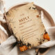 A warm and atmospheric design inspired by autumn nights, featuring rustic textures and seasonal elements such as pumpkins, lanterns, bare branches, and a glowing moon. Subtle vintage tones and soft lighting create a mysterious yet cozy ambiance, while details like bats and delicate foliage enhance the storytelling. The composition blends rustic charm with a slightly eerie, whimsical aesthetic, resulting in a unique and memorable seasonal design.