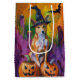 Spooky Basenji Halloween Witch And Pumpkin Medium Gift Bag