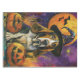 Embrace the Halloween spirit with this enchanting design featuring a cute dog in a witch hat surrounded by carved pumpkins. Perfect for adding a touch of spooky charm to your festive celebrations.