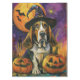 Spooky Basset Hound Halloween Witch And Pumpkin Tablecloth