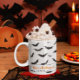Celebrate Halloween with our Spooky Bats Personalised Happy Halloween Coffee Mug, featuring a spooky bat design on white background and the festive inscription "Happy Halloween." This high-quality ceramic mug is perfect for enjoying your favourite hot beverages while adding a spooky touch to your Halloween festivities. Whether you're sipping coffee, tea, or cocoa, this bat-themed mug brings a whimsical and eerie charm to your daily routine. It's also an ideal gift for Halloween lovers, making every sip a memorable part of the spooky season.