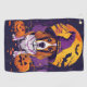 Embrace the Halloween spirit with this enchanting design featuring a cute dog in a witch hat surrounded by carved pumpkins. Perfect for adding a touch of spooky charm to your festive celebrations.
