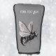 This custom golf club cover for your putters has a spooky drawing in black of a big bee with stinger and a skull on its wings on a grey background. Customise your text with the template.