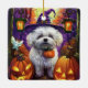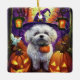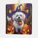 Spooky Bichon Frise Halloween Witch And Pumpkin Ceramic Ornament