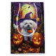Spooky Bichon Frise Halloween Witch And Pumpkin Medium Gift Bag